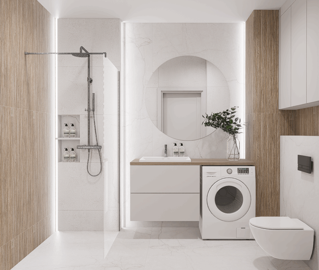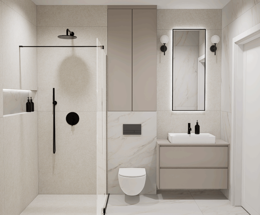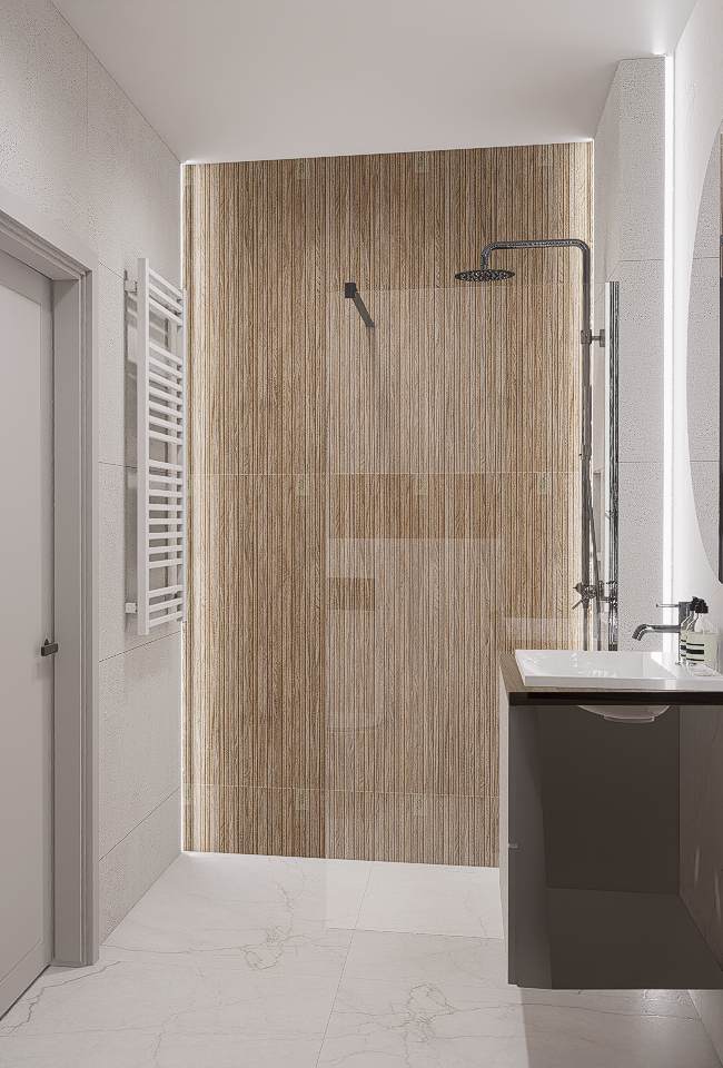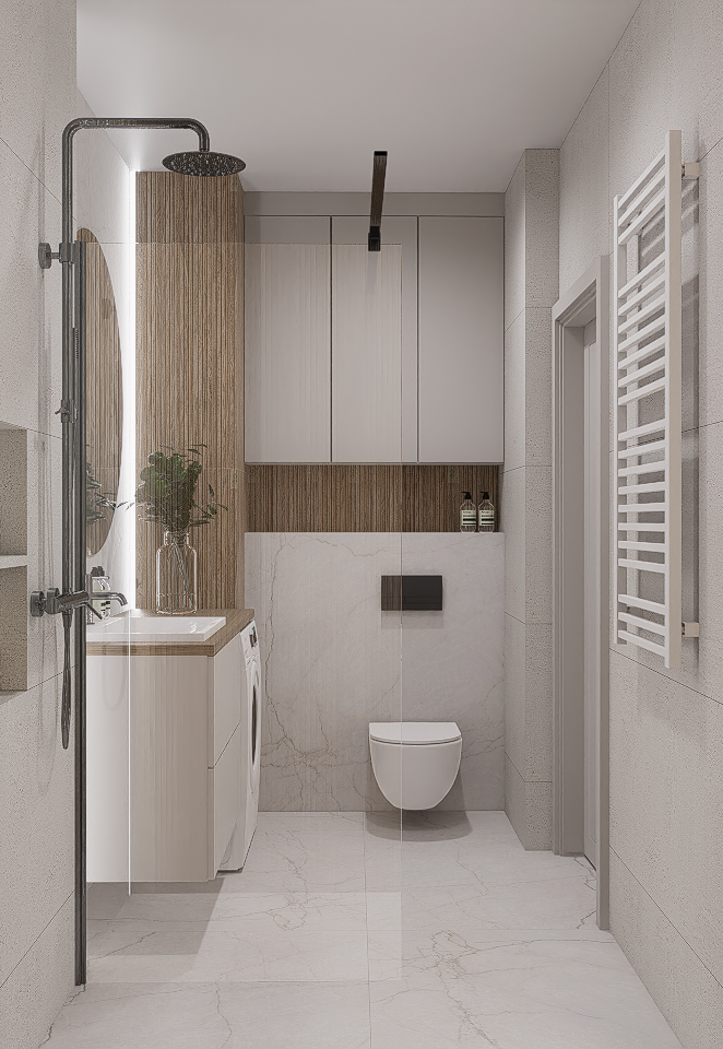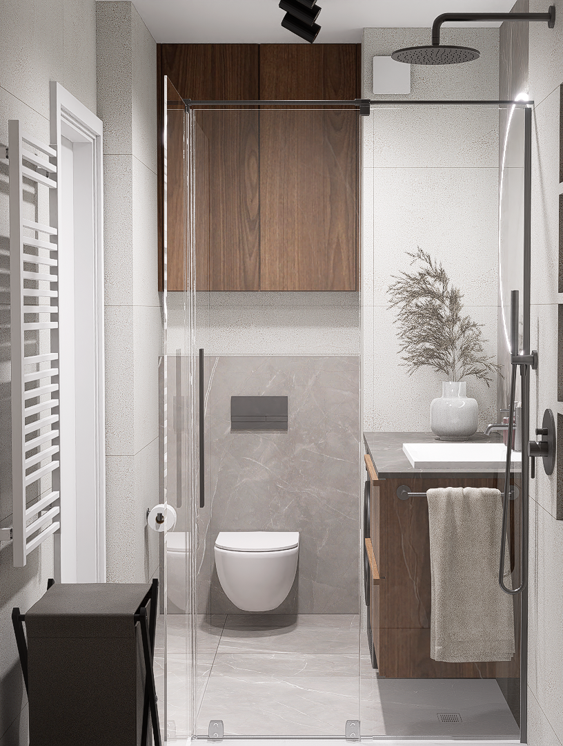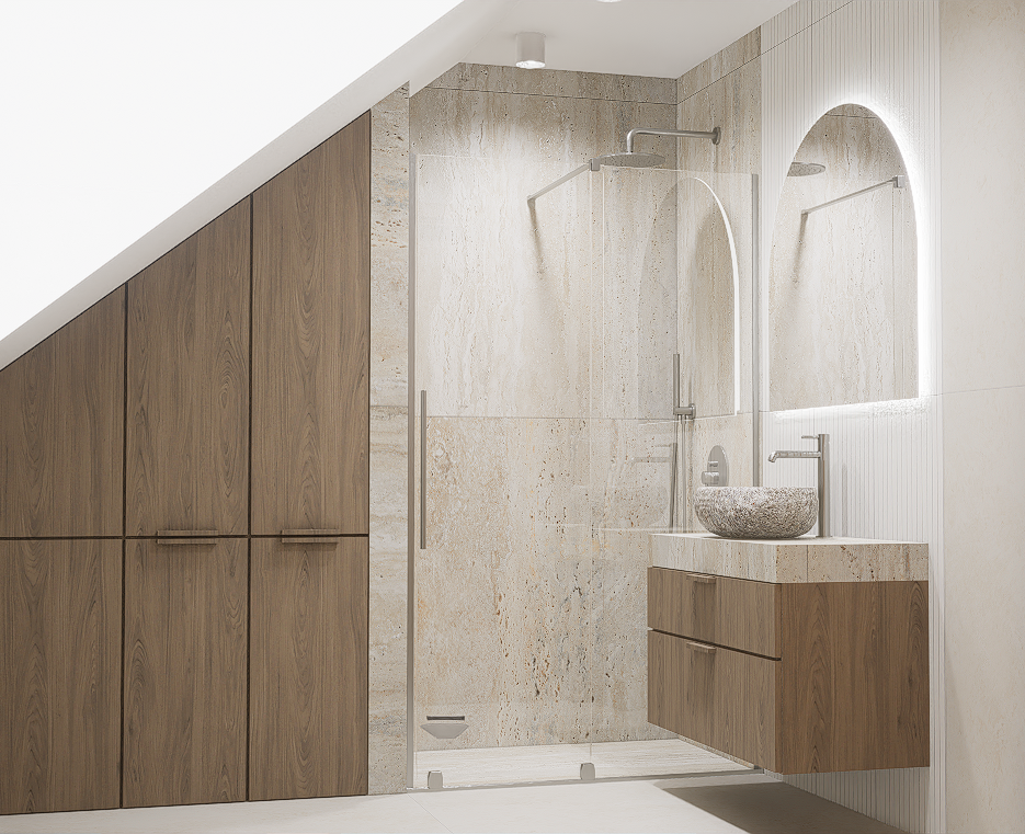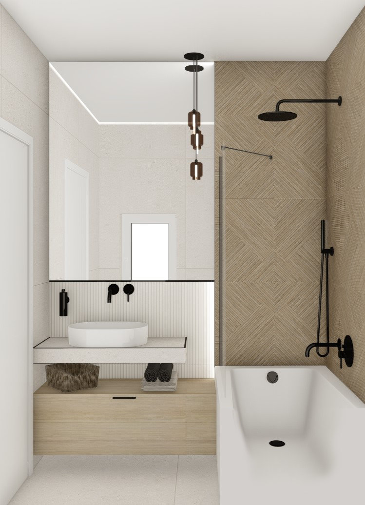 W pierwszej kolejności potrzebne będą dokładne wymiary pomieszczenia – możesz powierzyć to nam i umówić się na pomiar, lub samodzielnie pomierzyć łazienkę. Kolejnym etapem jest dobór materiałów i elementów wyposażenia – wszystko nanosimy w programie do projektowania 3D, a następnie przygotowujemy fotorealistyczną wizualizację Twojej łazienki.