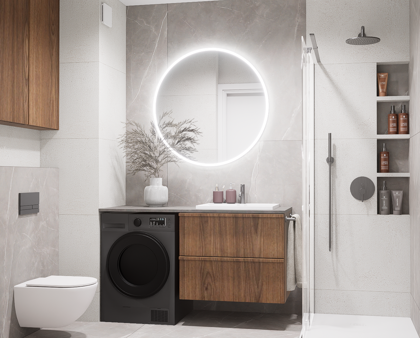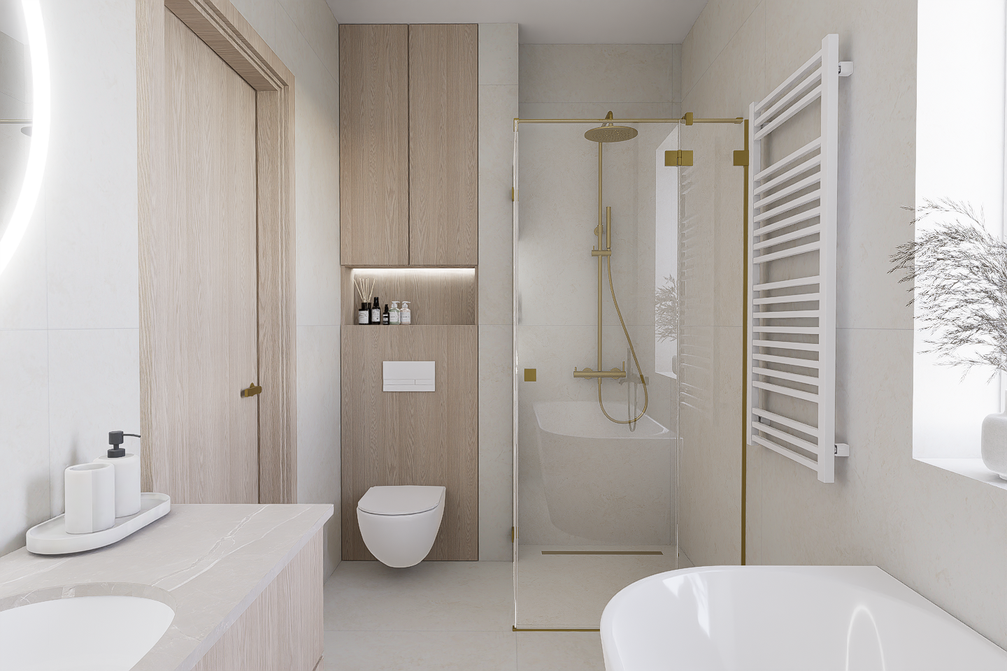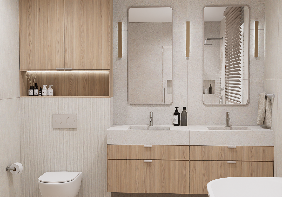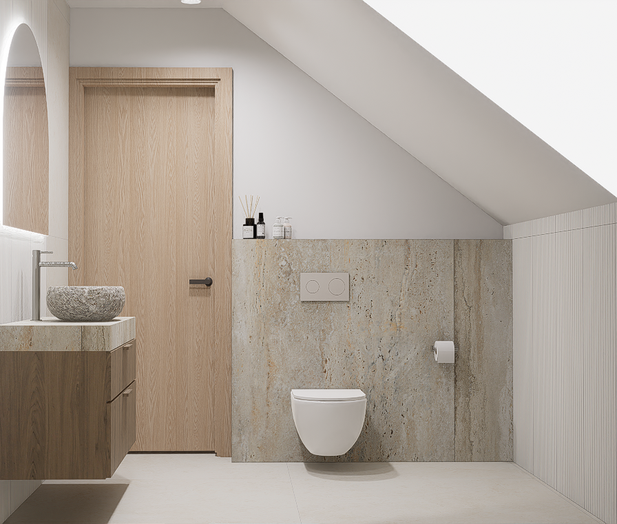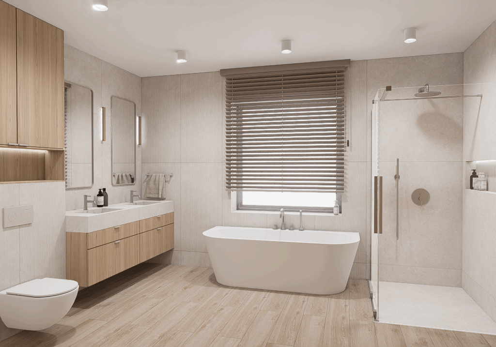 W pierwszej kolejności potrzebne będą dokładne wymiary pomieszczenia – możesz powierzyć to nam i umówić się na pomiar, lub samodzielnie pomierzyć łazienkę. Kolejnym etapem jest dobór materiałów i elementów wyposażenia – wszystko nanosimy w programie do projektowania 3D, a następnie przygotowujemy fotorealistyczną wizualizację Twojej łazienki.